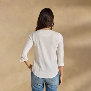 Subtle details make this allover rib sweater so special. with a hand-crocheted yoke and picot trim at V-neckline. Recycled wool/merino wool/cotton/nylon. Hand wash. Imported. Exclusive. Sizes XS (0–2). S (4–6). M (8–10). L (12–14). XL (16–18). XXL (20–22). Approx. 22l.