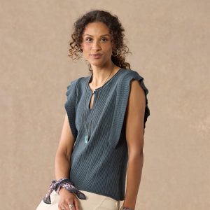 Embrace your artistic spirit in our sheer. easy-fit top with ladder lace. ruffle neckline and tassel ties. Cotton/viscose. Hand wash. Imported. Exclusive. Sizes XS (0?C2). S (4?C6). M (8?C10). L (12?C14). XL (16?C18). XXL (20?C22). Approx. 26.5l