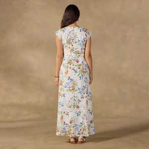 More is just enough for the Camarillo Eyelet Dress??with the freshest floral print on all-over eyelet fabric. The subtle structure of the seamed bodice flatters. while her slight flutter sleeve is a bit of a flirt. Center back zipper; fully lined. Cotton/rayon. Machine wash. Imported. Exclusive. Sizes 2?C16. Approx. 54l.