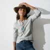Our lightweight. faded. reverse-print sweater with exposed seaming. side slits and rib trim. Three-quarter sleeves. Cotton. Hand wash. expect dye transfer or loss. Imported. Exclusive. Sizes XXS (00). XS (0-2). S (4-6). M (8-10). L (12-14). XL (16-18)1 Approx. 21.5l.