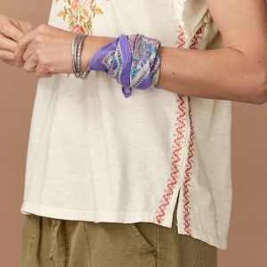 Slip into our easy-fit top with lush. floral embroidered border at V-neck. flowing flounce sleeves with raw-edge ruffle. geometric embroidery at side seams and side slits for comfort. Cotton. Machine wash. Imported. Exclusive. Sizes XXS (00). XS (0-2). S (4-6). M (8-10). L (12-14). XL (16-18). Approx. 23.5l.