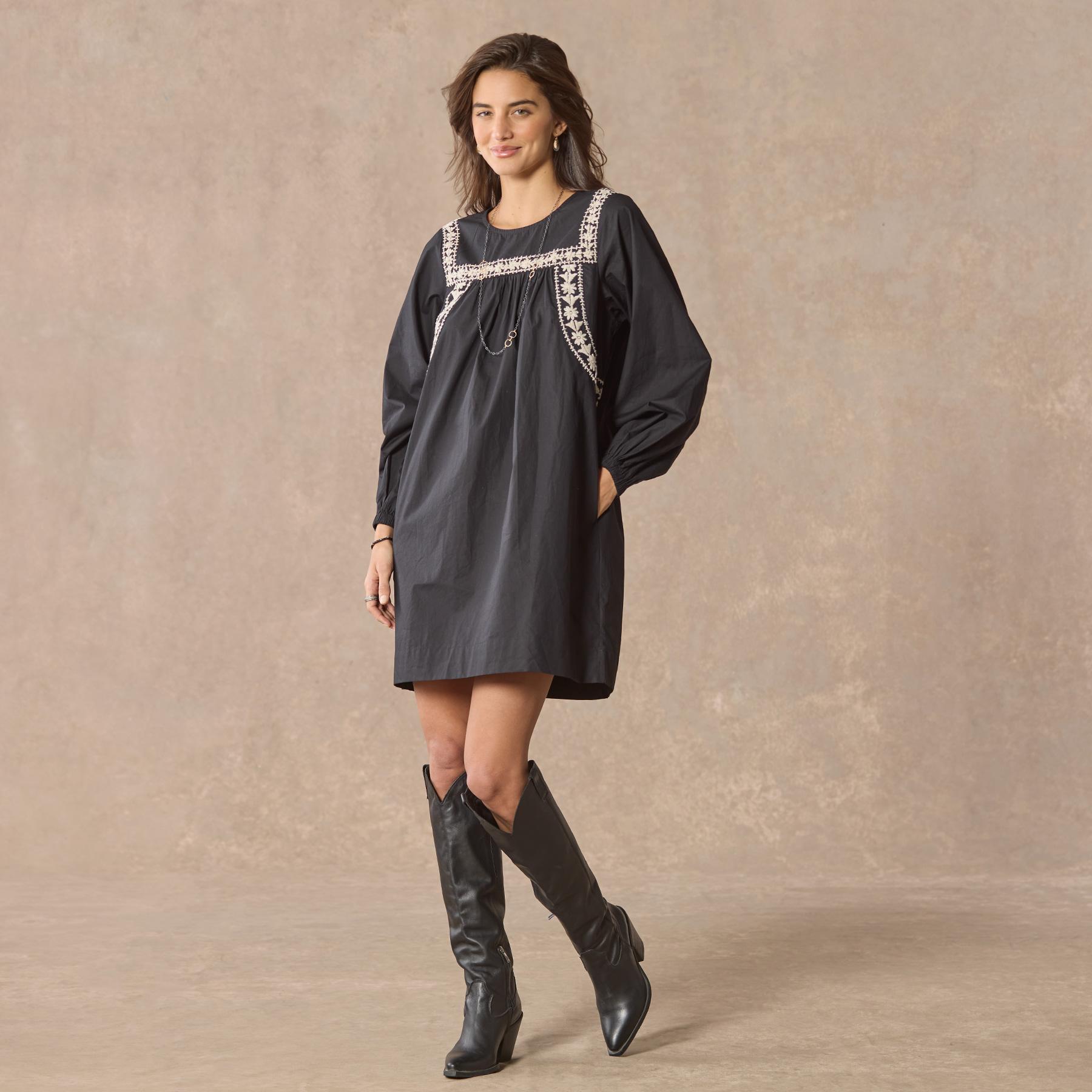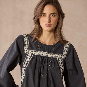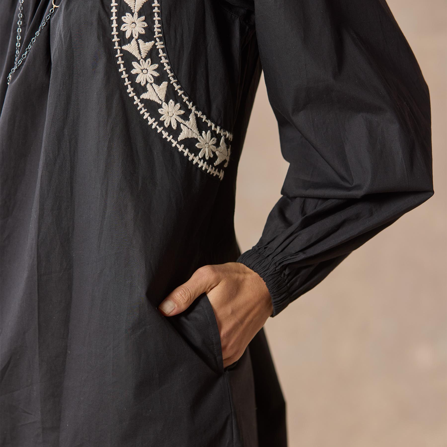 Easy to wear and bedecked with hand embroidery. this dress will quickly become a wardrobe staple. Organic cotton. Dry clean. Imported. Sizes XS (0?C2). S (4?C6). M (8?C10). L (12?C14). XL (16?C18). Approx. 36l.